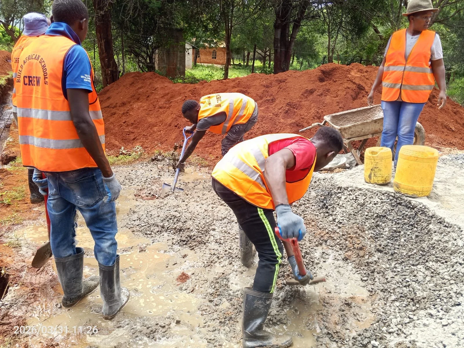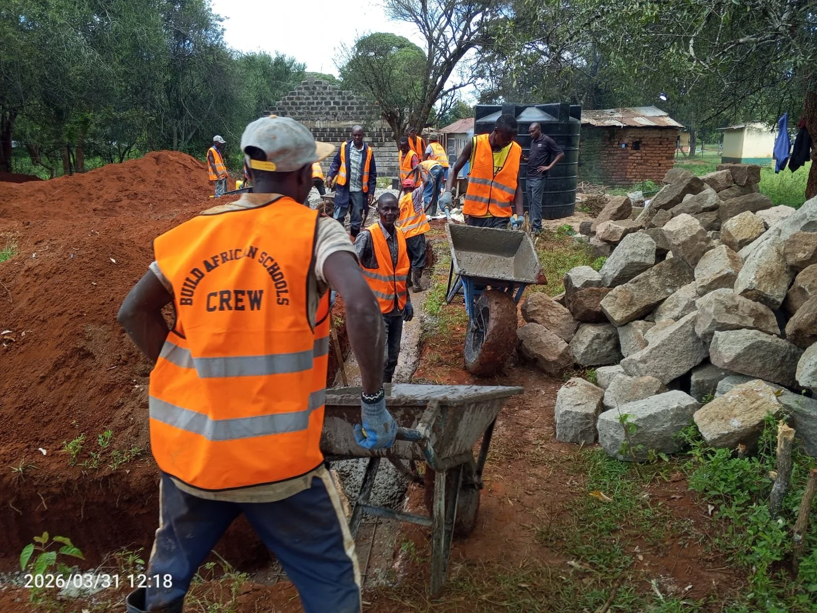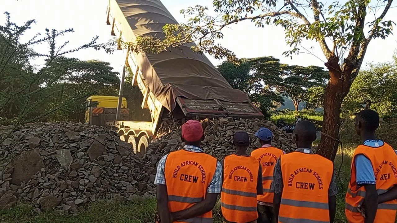 The site at Kithatha is active. The children from the nearby Primary school could not contain their excitement when the materials trucks started to roll in.The BAS crew is on the ground. Foundation trenches have been excavated and the concrete pour has begun. Stone has been delivered and is staged on site. Local labour. Local materials sourced nearby.